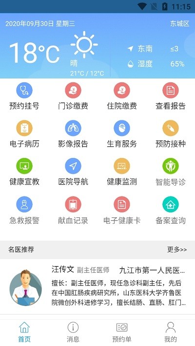 面向九江当地百姓提供九江当地多家医院的普通号预约挂号、专家号预约挂号。对接了各家多医院门诊、住院、检验、检查、手术的健康管理平台。